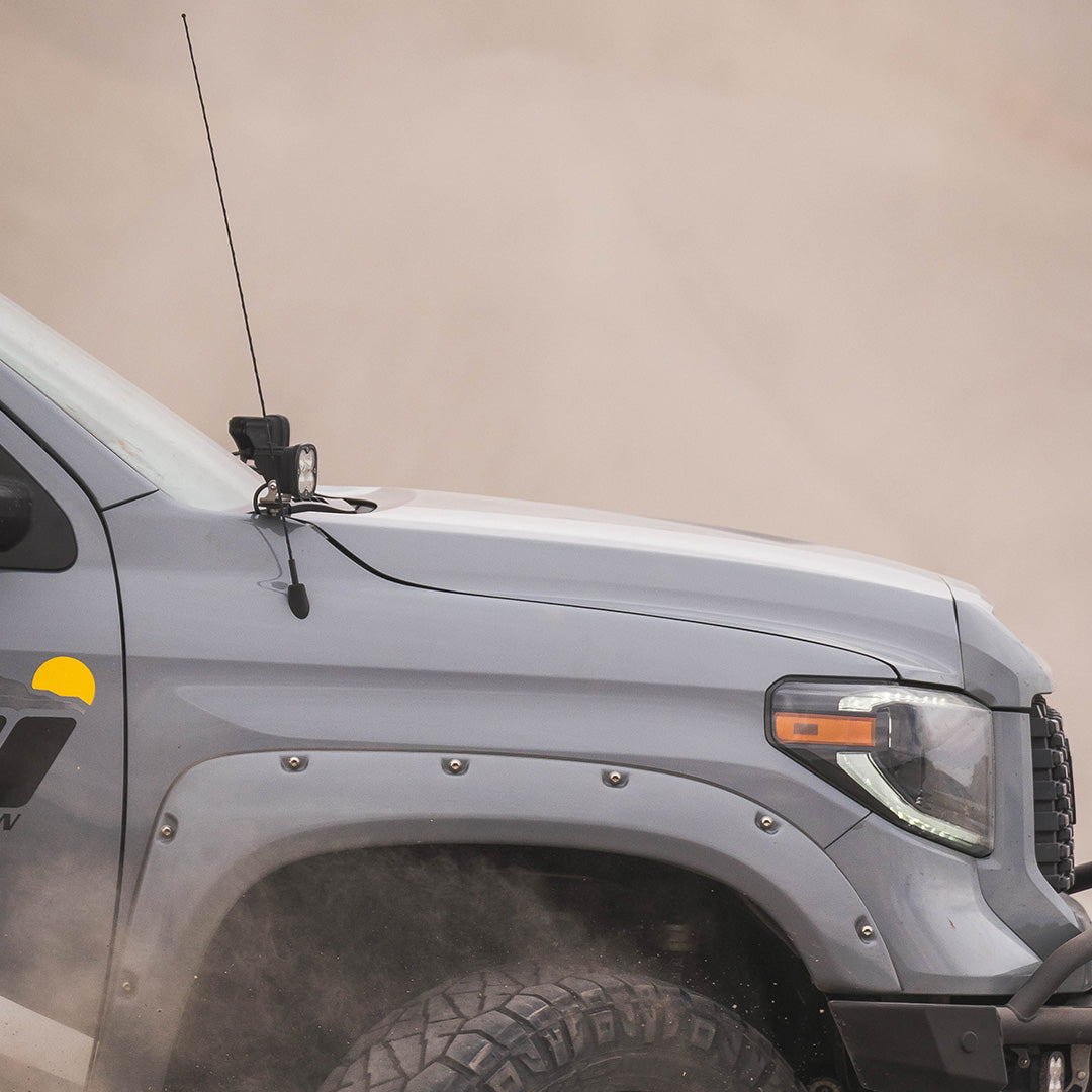 The CBI Offroad Ditch Light Brackets for the 2007–2021 Toyota Tundra are designed to enhance visibility and safety when your adventure continues after dark.