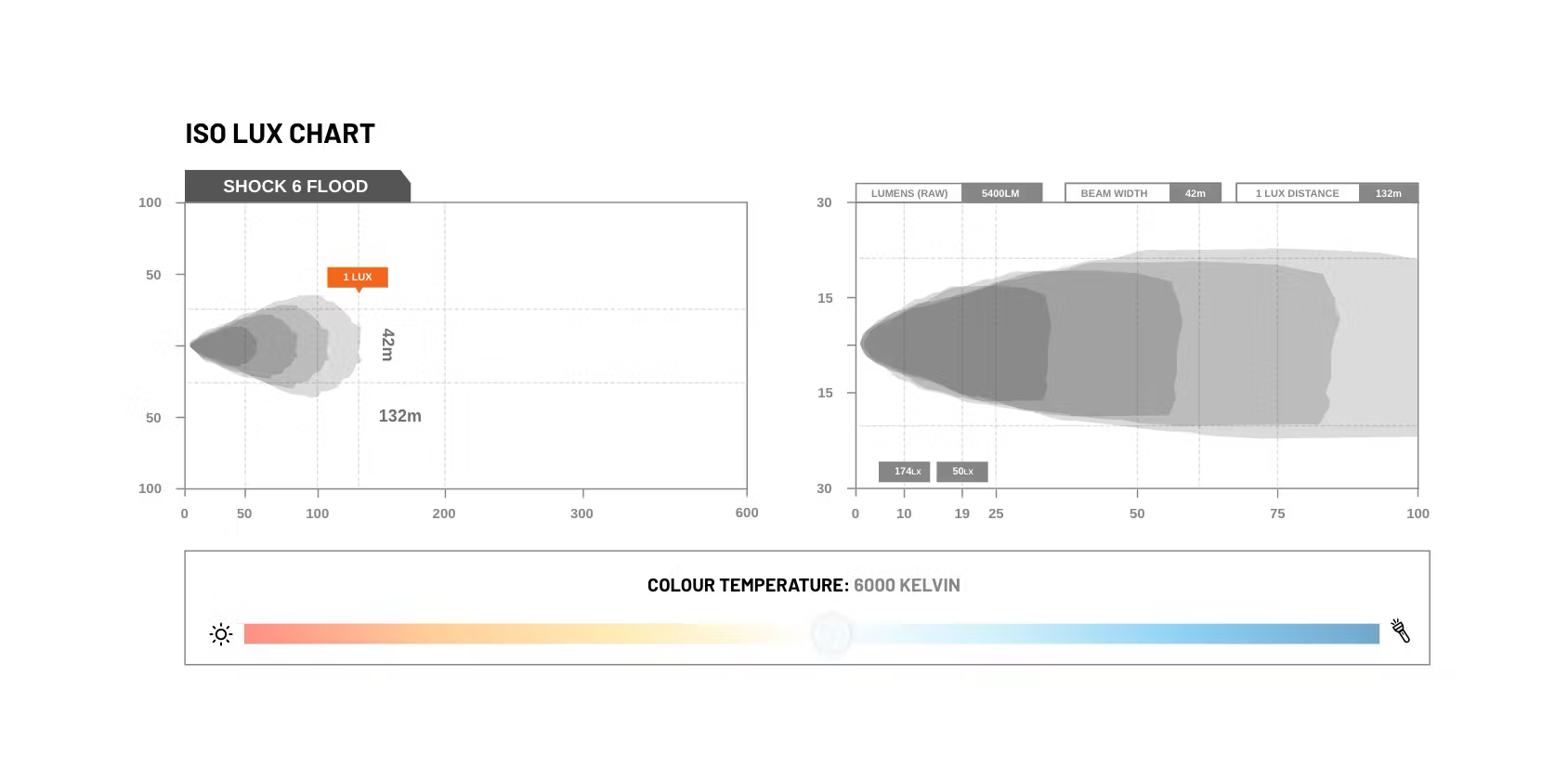 Powered by 6 × 10 W CREE® XM-L2 LEDs, the SHOCK 6 projects a 60° flood beam with 5,400 lumens of clean 5000 K illumination.