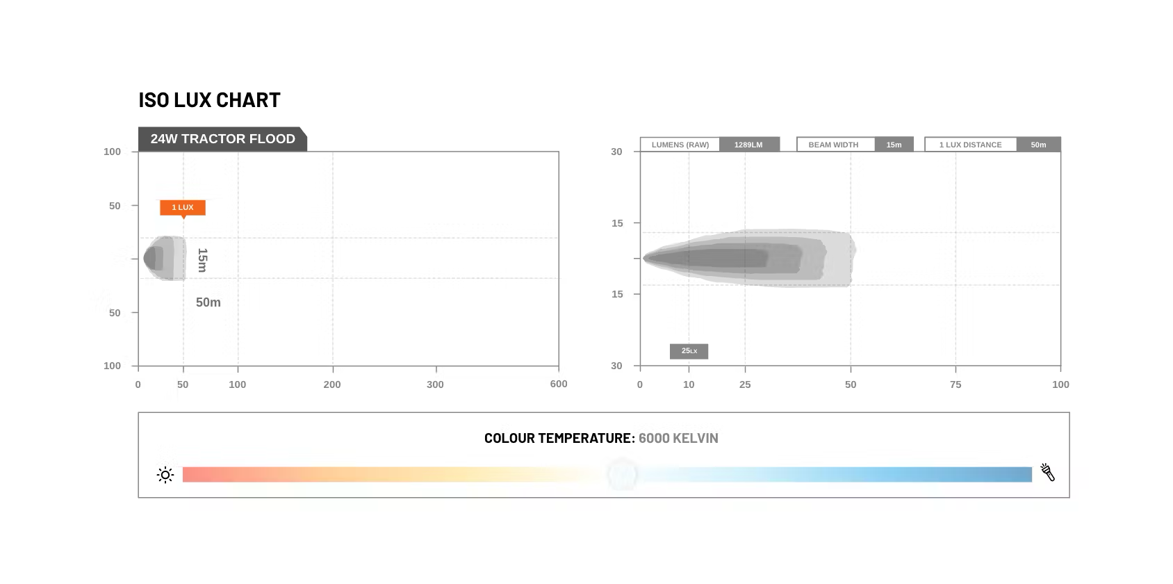 Engineered with a 6063 die-cast aluminium housing and a virtually indestructible UV-stabilised polycarbonate lens, the Tractor Light – 24W Flood is made to handle vibration, weather, and continuous operation. The Deutsch DT-2 sealed connector ensures secure, moisture-resistant wiring for long-term use.